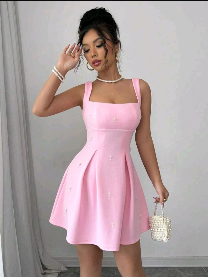 اكتشفي فستان بيبي بينك قصير بتصميم أنيق يناسب الخروجات و السهرات.خامه فاخره.تفصيل مميز يظهر أنوثتك بثقه و جاذبيه