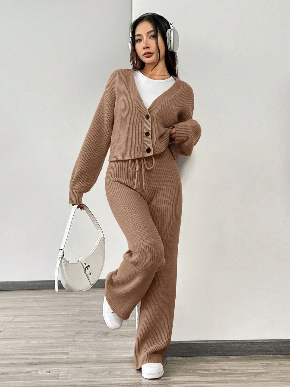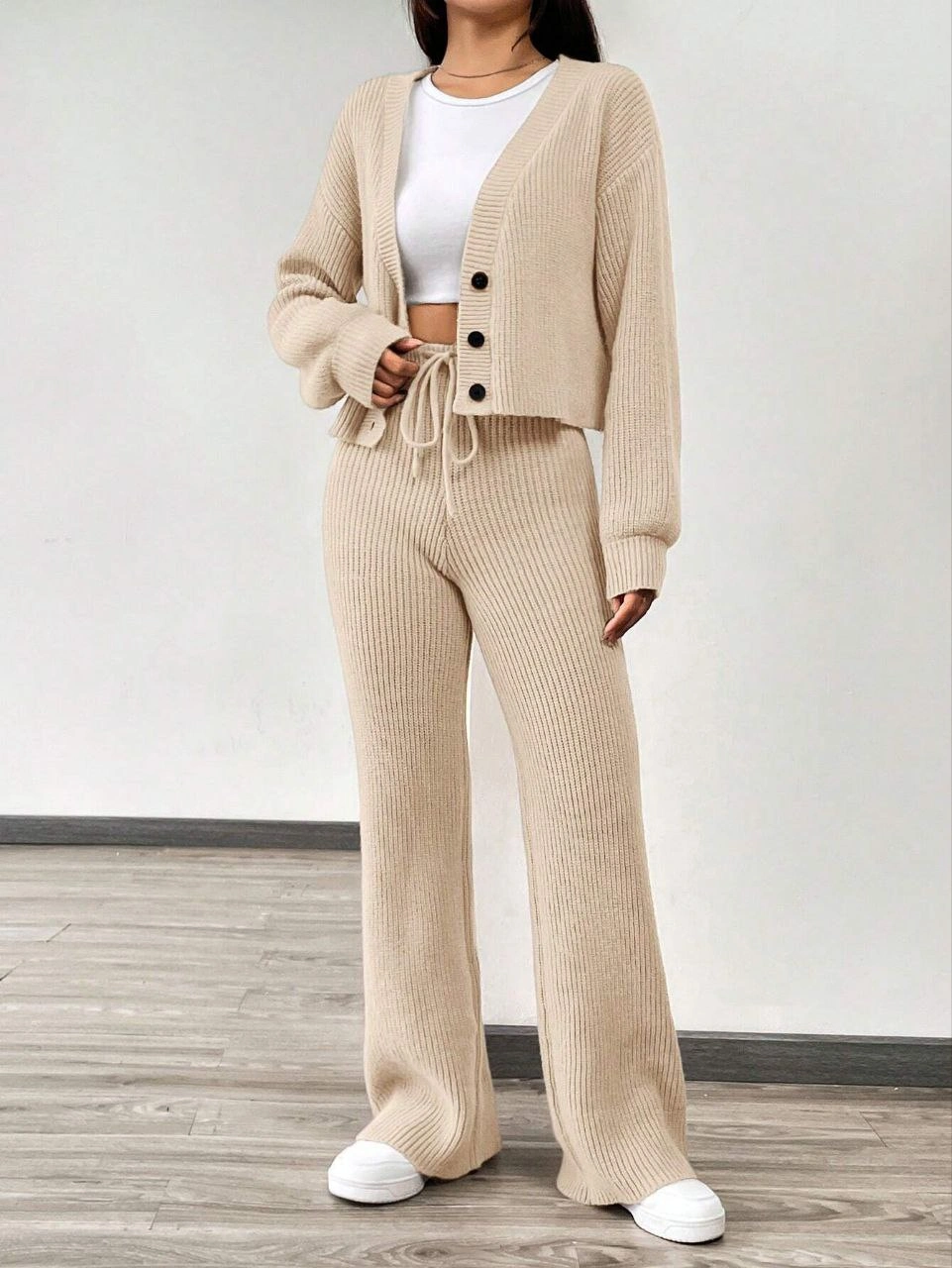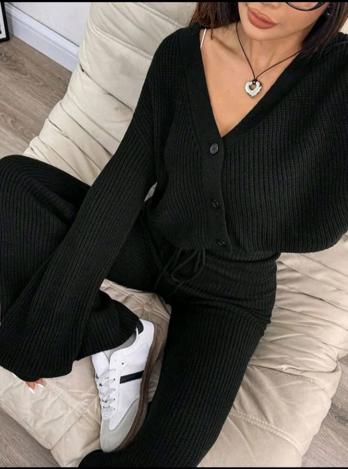 Winter Women's Casual Solid Color Long Sleeves Cardigan Two Pieces Set